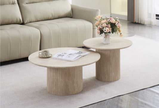 Table basse effet Travertin Bois