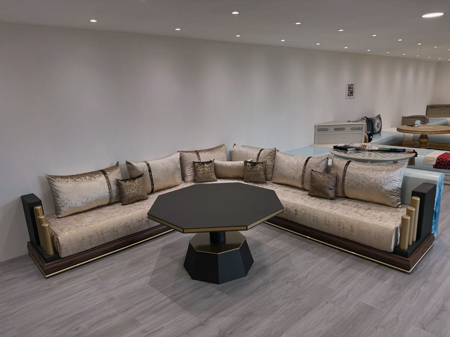 Le Salon Alifa est conçu pour sublimer vos espaces avec une combinaison parfaite de design moderne et d’inspiration orientale. Avec ses dimensions généreuses de 3 m x 3 m, il est idéal pour accueillir vos convives dans une ambiance chaleureuse et élégante.