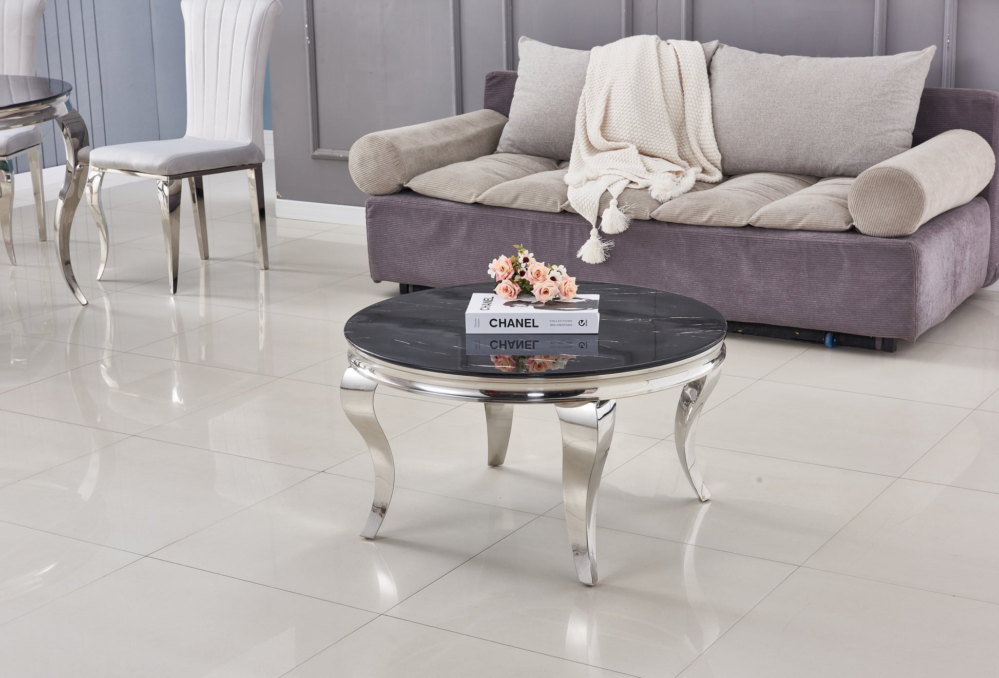 Table Basse Baroque en Marbre Rond - Pied Doré