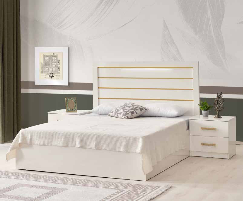 Armoire : Armoire 2 ou 3 portes avec une finition beige et or. Armoire 2 portes : L: 95, P: 60, H: 200 cm ; 3 portes : L: 125, P: 60, H: 200 cm.