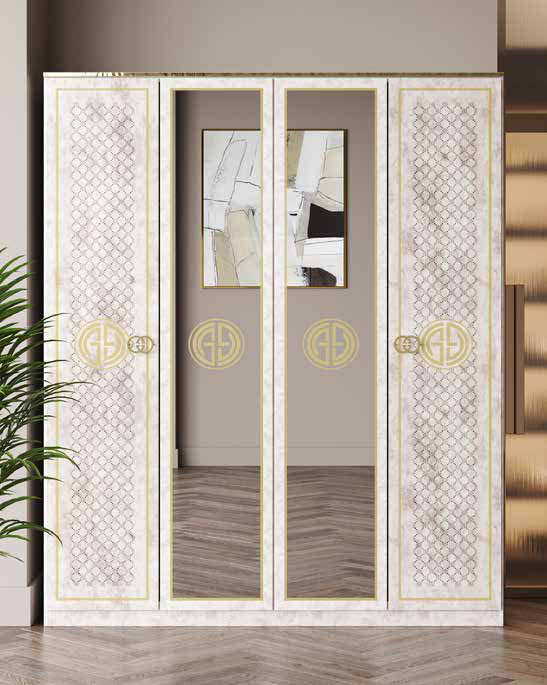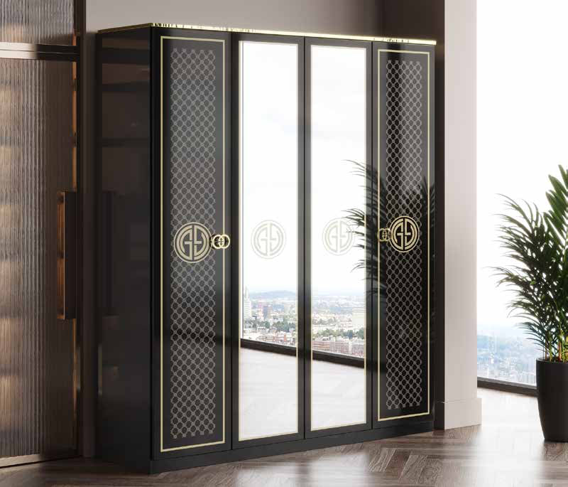 Armoire : 4 portes spacieuses, L 180 x P 57 x H 216 cm