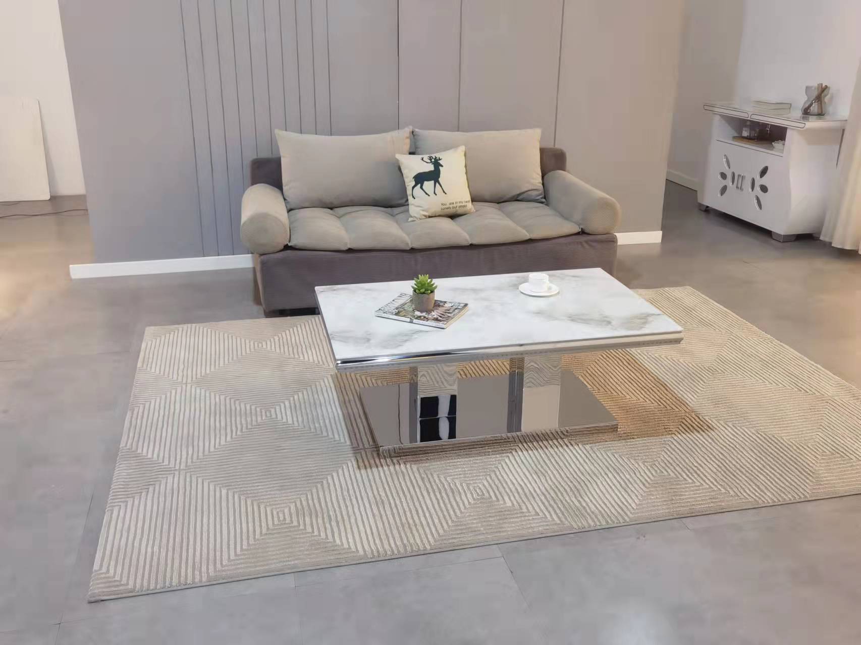 Table basse Versus en Chrome Doré et Marbre – Luxe et Élégance